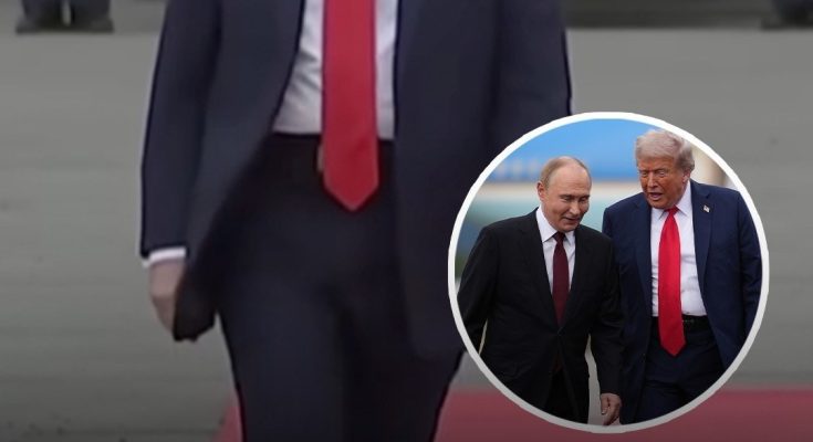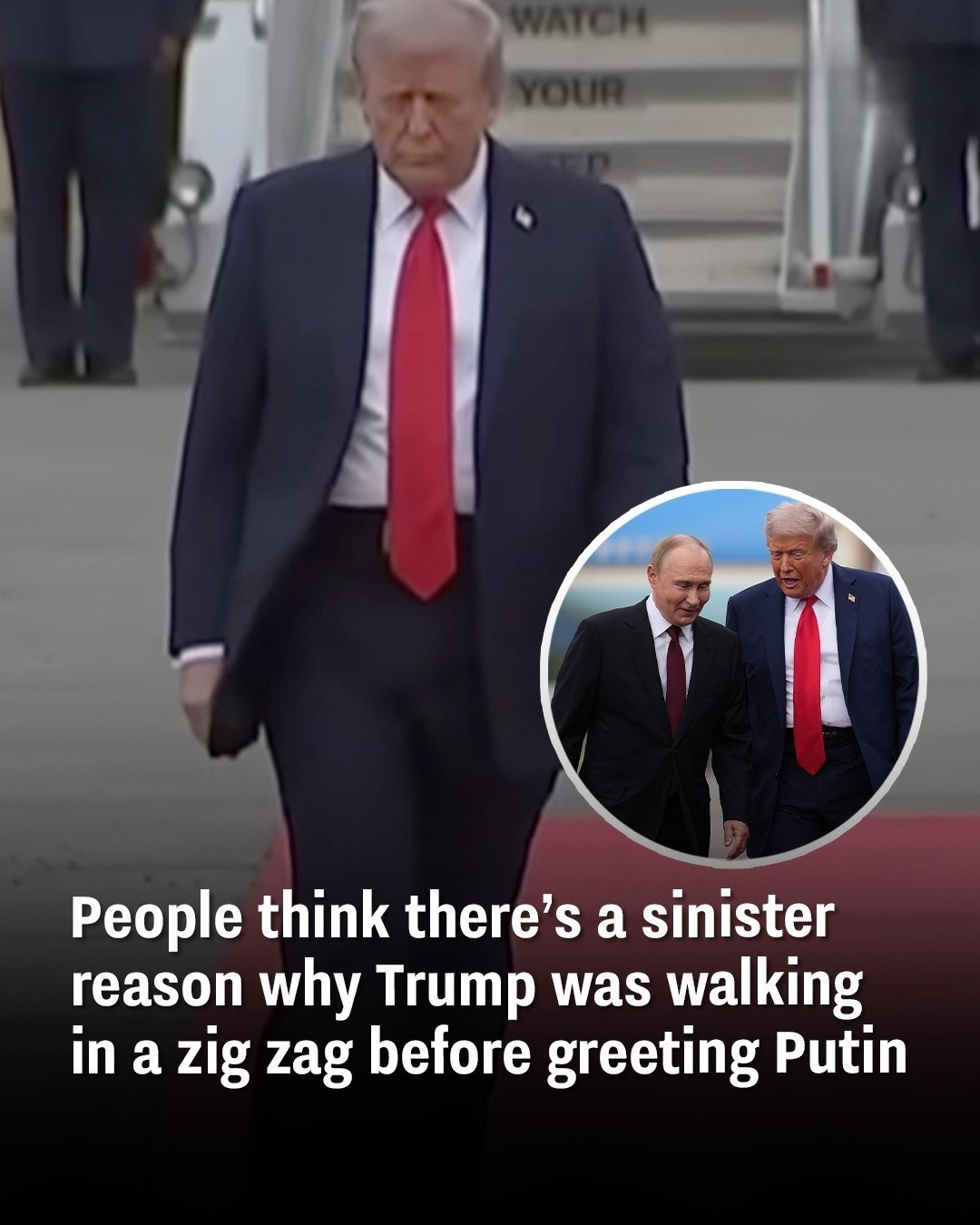 People think there’s a sinister reason why Trump was walking in a zig zag before greeting Putin