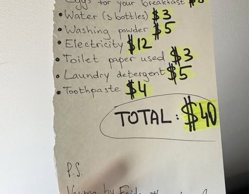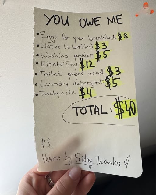 It was a bill with an itemized list for “living expenses” that seemed like a prank: