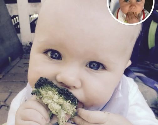 Shan Cooper’s daughter Grace eating broccoli, Photo Credit: Instagram/myfoodreligion