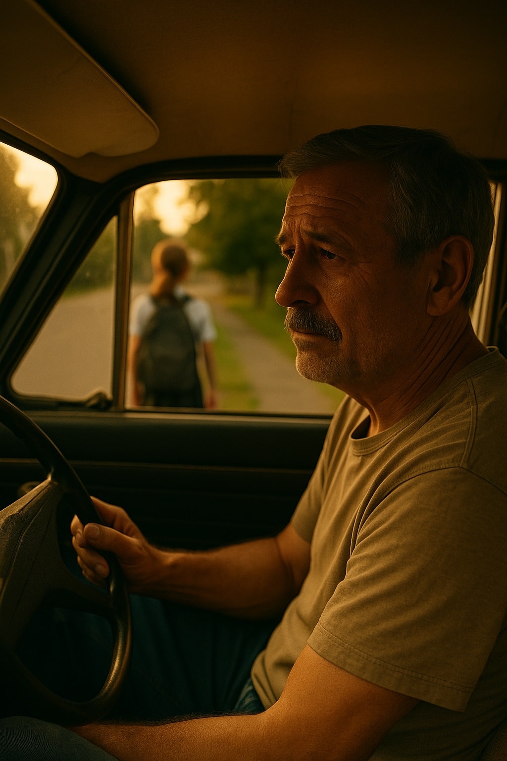 His eyes lingered on her — the creased school uniform, the faded backpack hanging by one strap.