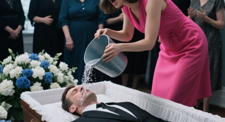 Laura knelt beside the coffin — and without a word, emptied the entire bucket over Daniel’s face.