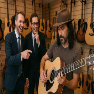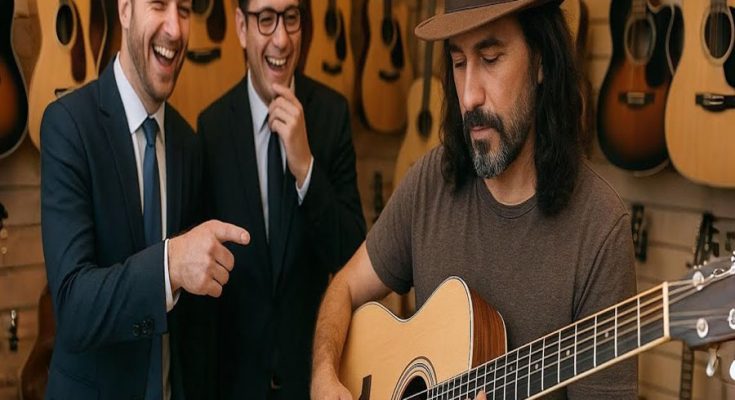 Las carcajadas resonaron y aunque algunos clientes se mostraban incómodos con la escena, nadie intervenía. Parecía más fácil unirse a la corriente de burlas que defender a aquel hombre que mantenía un silencio desconcertante. Marco, en lugar de apartarse, caminó hacia otra vitrina donde estaban exhibidos varios modelos acústicos. Su mirada era tranquila, pero profunda, como la de alguien que estaba acostumbrado a la incomprensión.