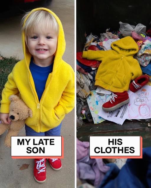 I ran to the garage — and there it was: a black trash bag tied neatly, like a gift. Inside were Caleb’s things — soaked in coffee grounds, tangled in trash, his drawings crumpled like junk mail. His hoodie was smeared with food scraps. I screamed until my voice broke. Ethan ran in, horrified.