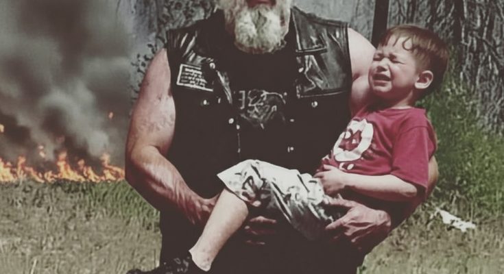 The massive biker carried the unconscious four-year-old boy through five miles of forest fire because his wheelchair couldn’t make it through the evacuation route.