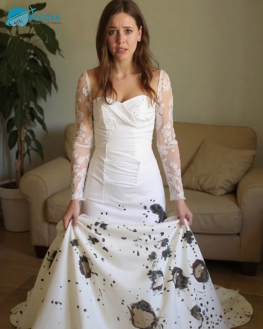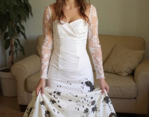 By noon, the dress was reborn, not perfect, not pristine, but beautiful in a way that only survival can be. The lace no longer flowed evenly, but the patchwork told a story of love that refused to break.