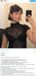 On Instagram, where she has more than 250,000 followers, her artwork often focuses on Middle Eastern women, Gaza, and the Palestinian cause.