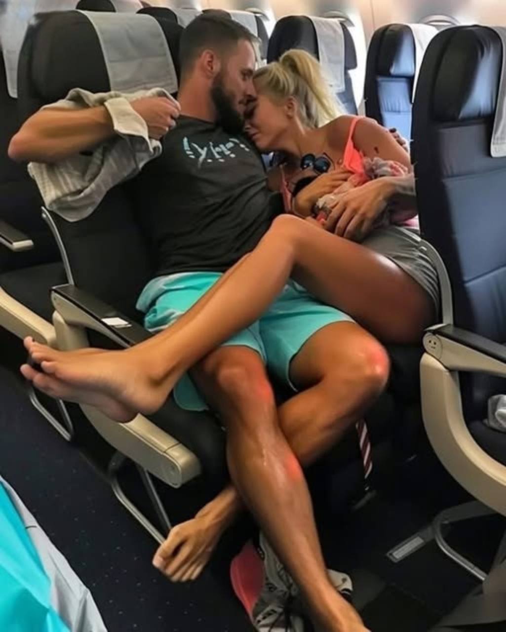 I said, loud enough for other passengers to hear, “Problem? Oh, where do I start?” “These two have turned this flight into their personal honeymoon suite.”