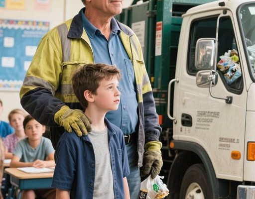 In the weeks that followed, I noticed a change. He didn’t just tolerate my job—he bragged about it. He told friends how his dad could control a truck that lifts tons of garbage with one arm. He even drew a picture of me in my uniform for an art project titled ‘My Hero.’