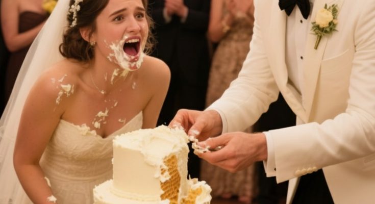 Buttercream covered my face, hair, and the bodice of my dress. My makeup was destroyed. I couldn’t see through the thick layer of cake and frosting.