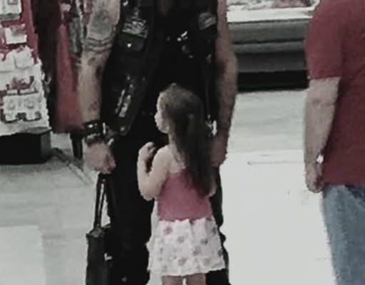 The mute six-year-old bolted across Walmart and threw herself into the arms of a towering biker, her hands flying in frantic signs as tears streamed down her cheeks.