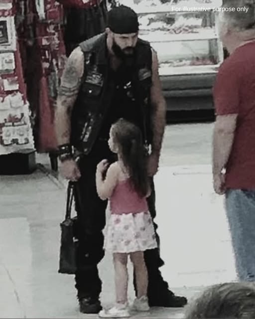 The biker’s face shifted from worry to blazing fury. Rising to his full height, he scanned the store with eyes that promised violence, keeping the girl pressed tightly against his chest.