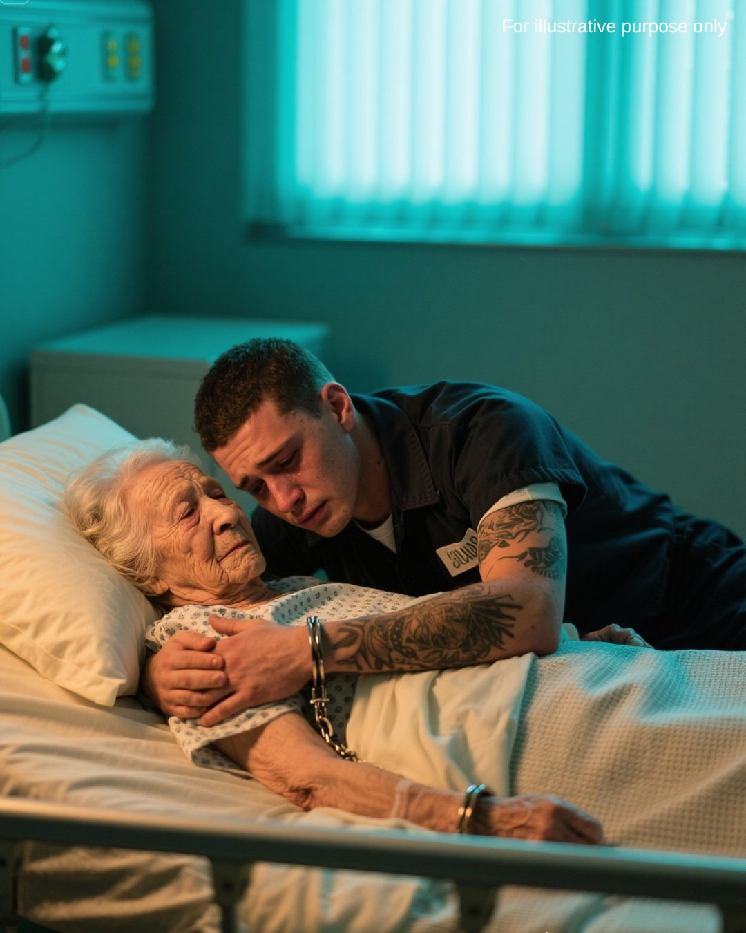 He sat beside her, taking her paper-thin, trembling hand into his. His tattooed fingers covered hers, and in that moment, he felt the unconditional love she had given him all these years.
