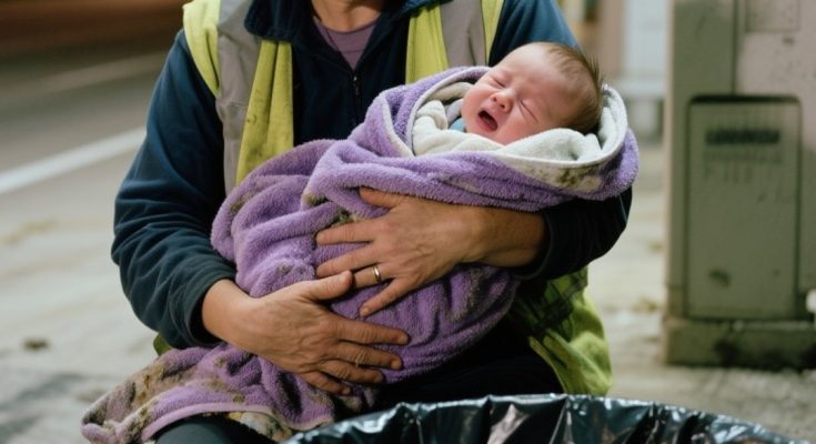 She tore open the plastic liner and saw the newborn boy. Only a few hours old, he was loosely wrapped in a thin, filthy blanket. His skin was bluish from the cold, and his tiny body shivered violently. His cries echoed sharply in the cold restroom, mingling fear and hunger, making the space feel alive with urgency.