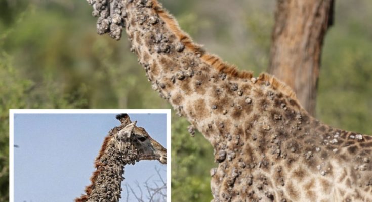 Despite its strange appearance, this giraffe is expected to survive, as papillomavirus infections generally don’t shorten lifespan unless complications arise.