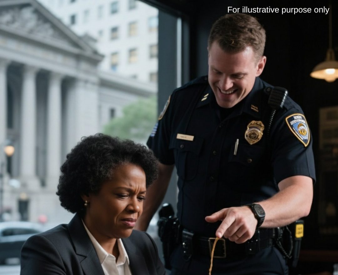 As Angela reached for her cup, a uniformed police officer brushed past her roughly. Hot coffee splashed onto her hand and sleeve.