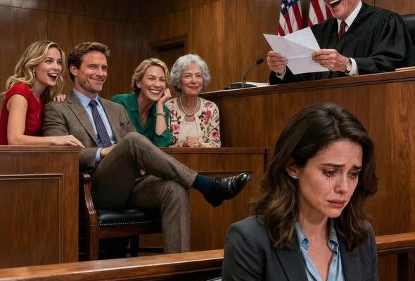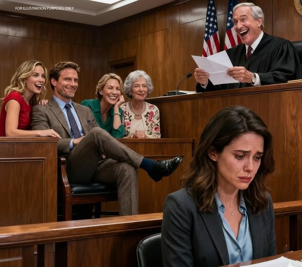 Beside him sat his new partner, polished and smug, dressed like she was attending a gala instead of a divorce hearing. She laughed softly and whispered something into his ear, then glanced at me with open disdain.