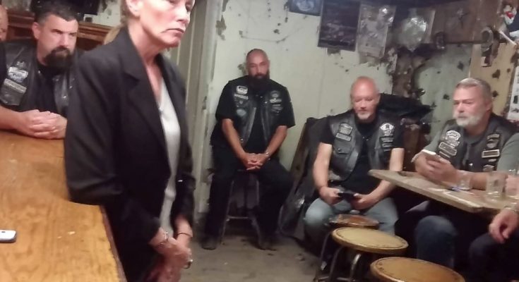 A younger biker with sleeve tattoos added, “We’ll park outside his apartment building. Legally. On public property. We’ll sit outside his work during his entire shift. We’ll be at every restaurant he goes to.”