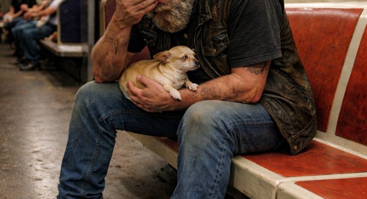 Biker Was Crying Over A Dying Dog On The Subway And Everyone Moved Away Except Me