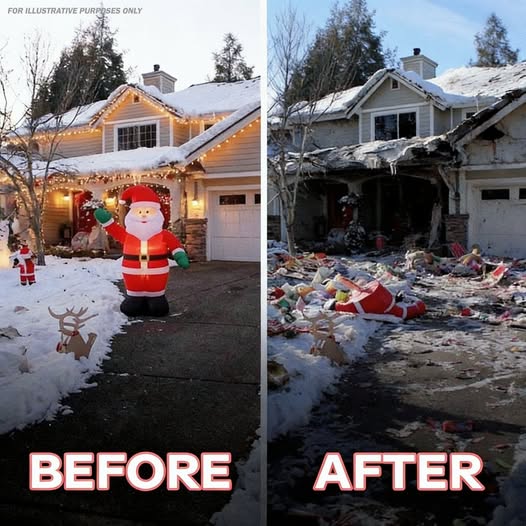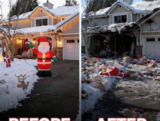 I stood there frozen, the cold biting through my slippers as I stared at what used to be our Christmas wonderland. The yard looked like a battlefield. Plastic shards, torn fabric, tangled lights—everything we’d built with so much joy lay ruined, trampled into the snow.