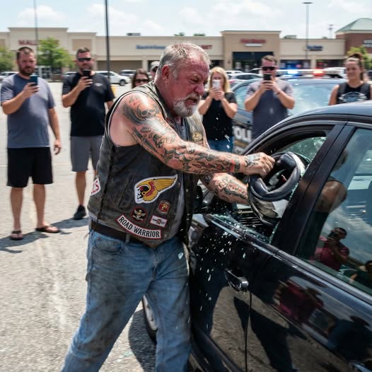 “No you didn’t. Engine was off. Windows were up. AC wasn’t running.” The biker stepped closer. Even the police officer tensed. “I know because I checked before I broke the window. Felt the hood. Cold. You turned that car off and left your baby to die.”