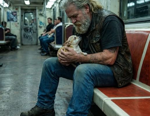 He looked out of place immediately. Worn leather vest covered in patches. Faded bandana. Boots that had seen decades of roads. His beard was gray and long, his face weathered like old leather.