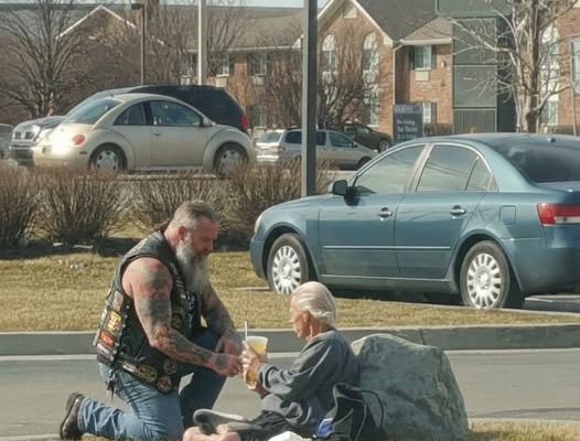 And I’m telling this story everywhere I can because people need to know: that scary-looking biker in the parking lot kneeling next to a homeless man? He’s a better person than most of us will ever be.
