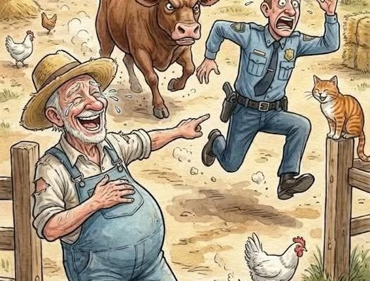 He cupped his hands and called out, voice carrying easily across the yard. “Next time,” he said, “you might want to show your badge to the bull first.”
