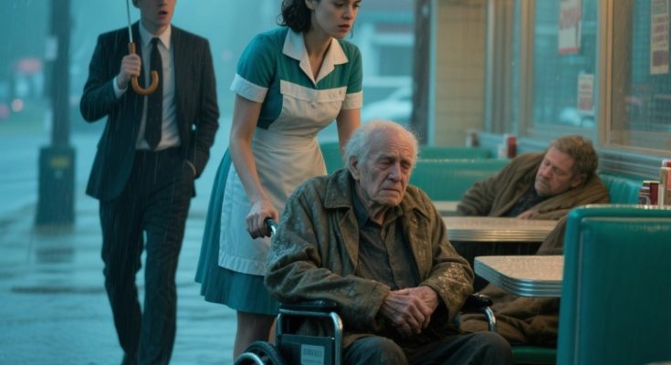 The Billionaire Was Stunned When He Encountered the Poor Waitress Caring for His Disabled Father in the Heavy Rain – The Shocking Explanation Behind the Coincidence