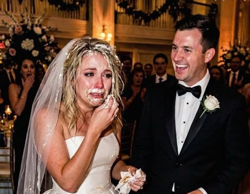 Buttercream covered my face, my hair, my dress. My makeup was completely destroyed. I couldn’t see through the thick frosting.