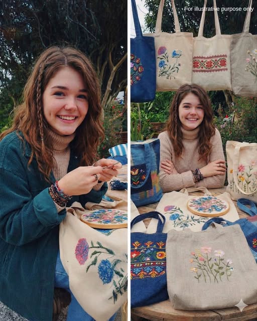 Ava’s table sat near the entrance. She had arranged 21 tote bags neatly, with a handwritten sign: “Made from donated fabric. All proceeds go to winter clothing drives! :)”