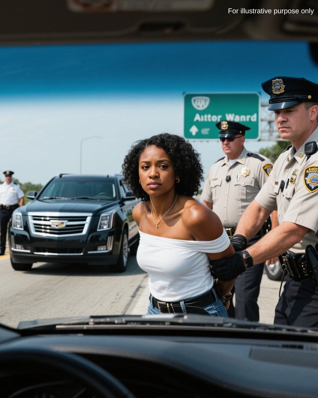 Her SUV lurched to a stop on the shoulder, gravel crunching under the tires. “Keep your hands where we can see them,” Deputy Dawson’s voice boomed through a megaphone. He emerged from the lead car, hand already on his holster. Deputy Riker approached from the other side, his face twisted in a sneer.