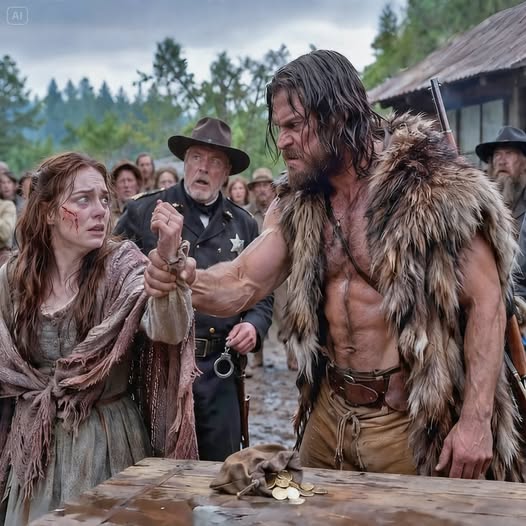 He was enormous. Not merely tall, though at 6’4 he was taller than any man in Copper Creek, but broad enough through the shoulders to make the space around him feel suddenly smaller. He wore a heavy coat of patched buffalo hide and a wide-brimmed hat low over eyes dark as a ravine at dusk. A Henry repeating rifle rested with easy familiarity in the crook of his arm. A massive hunting knife rode against his thigh. He smelled of pine pitch, cold air, smoke, leather, and something wilder than town life knew how to name.