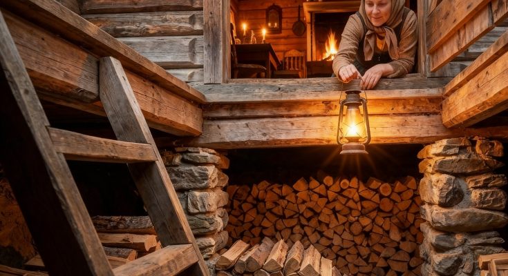 Meanwhile, beneath the kitchen table, accessible by a 37-lb trap door edged with leather and insulated with wool, lay a practical reserve shaped by months of labor no one had praised while it was being done. Dry wood rose from that chamber into the cabin day after day, and with every armload the value of foresight was converted into warmth.