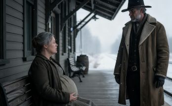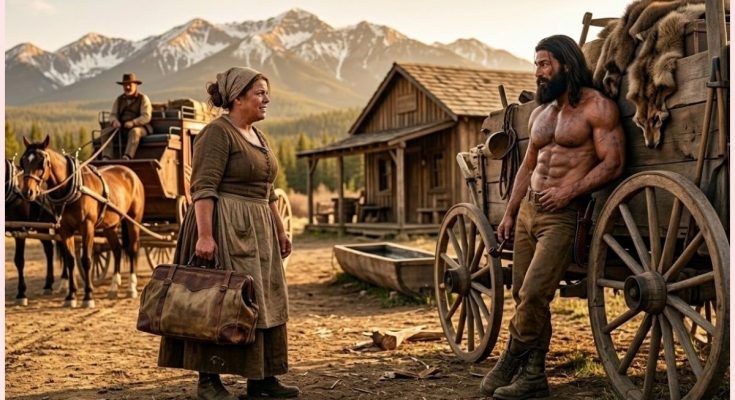 The stage rolled in under a pale spring sky with mud still clinging to its wheels from lower roads. Callum stood by the hitching rail and watched as passengers descended, each one momentarily obscured by the shifting door and the driver’s bulk until finally a woman in a plain brown dress stepped down carrying one bag.