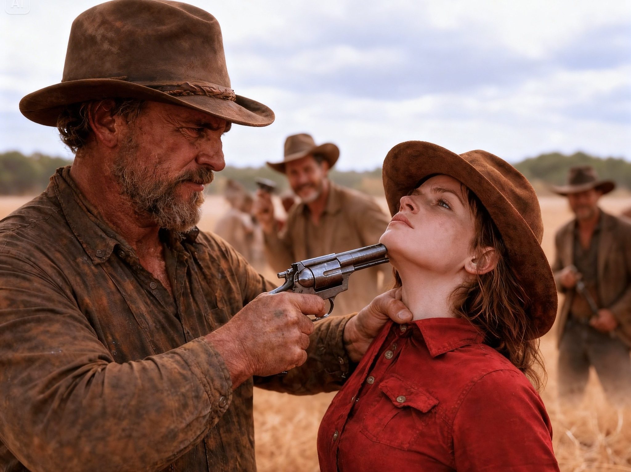 She finished tightening the wire without looking down. The dust thickened. The gunfire stopped. Silence dropped back over the land as if the desert itself had decided to listen more closely.